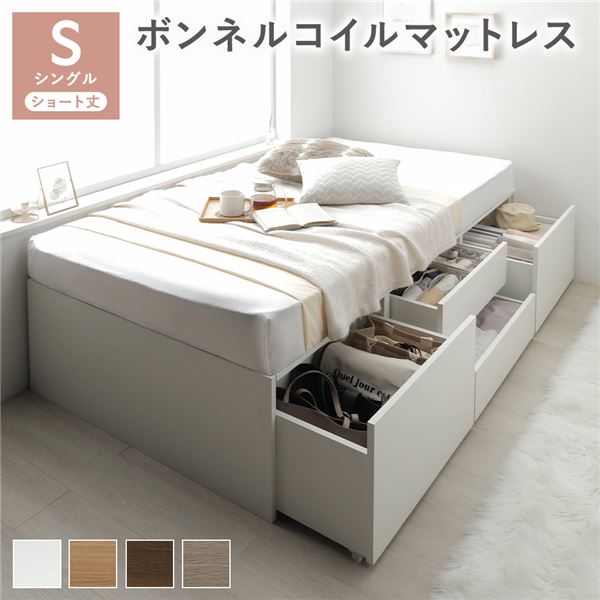 ヘッドレス チェスト ベッド ショート丈シングル ホワイト ボンネルコイルマットレス付き 大容量 収納付 すのこ 収納ベッド 組立品